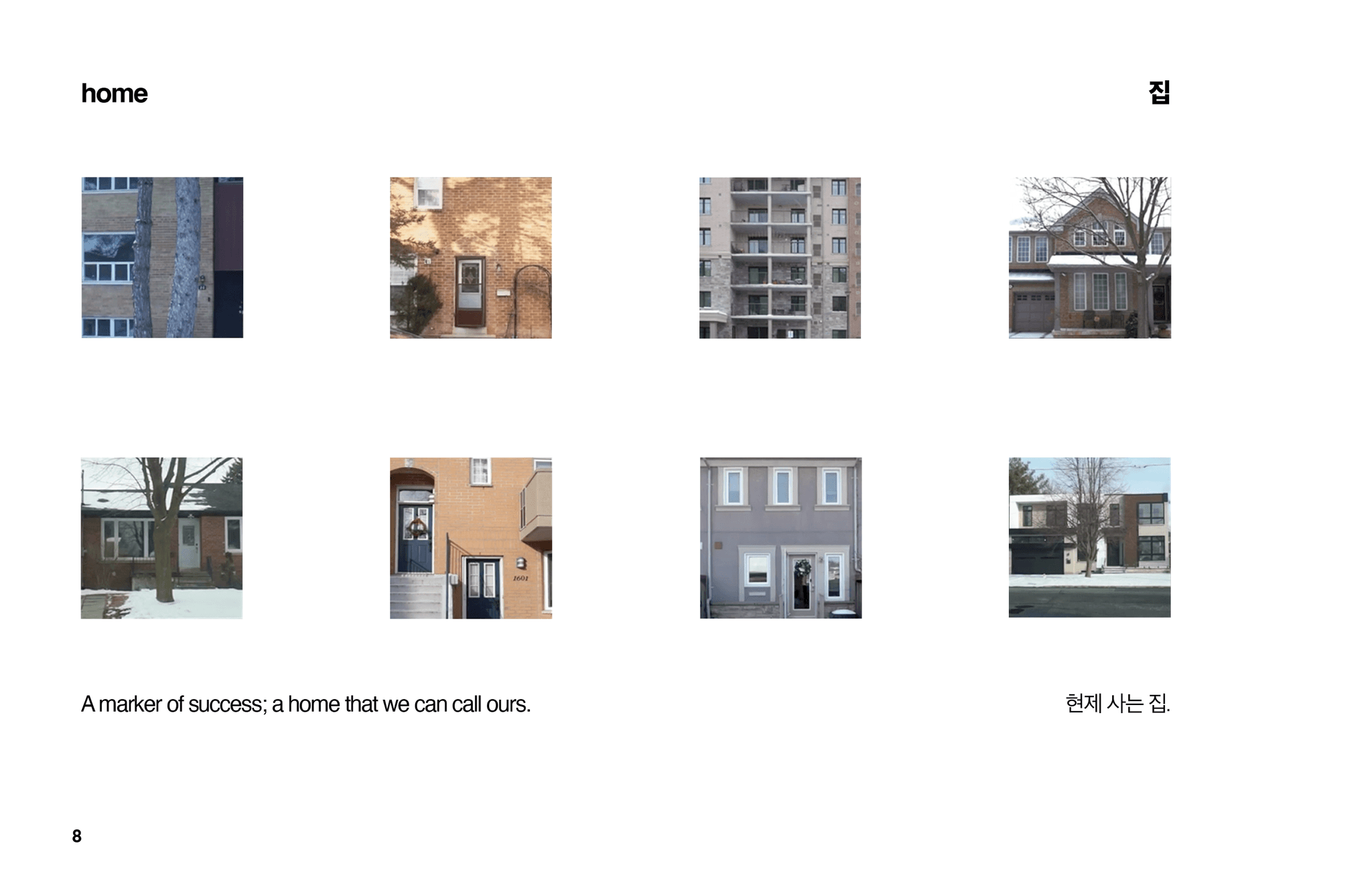 At its core, the project is built on a foundation of eight 8” x 8” boxes, each representing the story of one of eight families. These narratives are conveyed through eight videos, each lasting eight seconds.